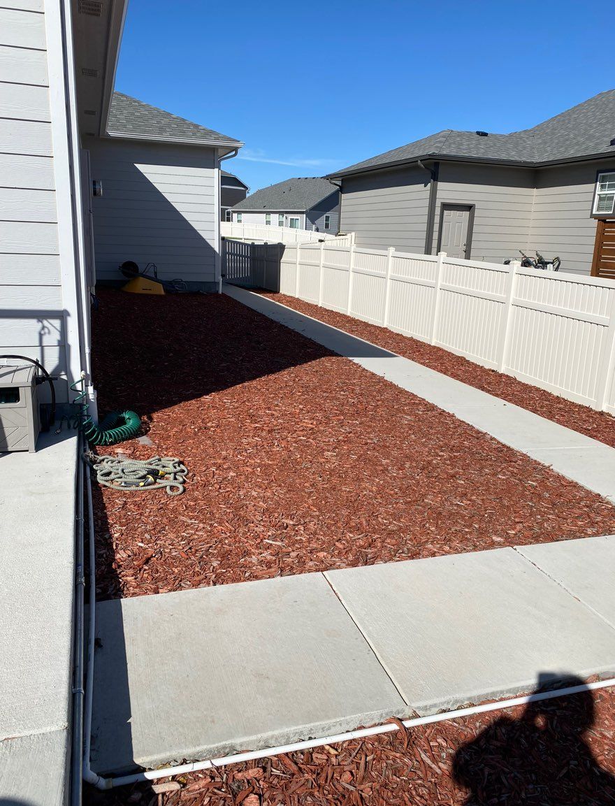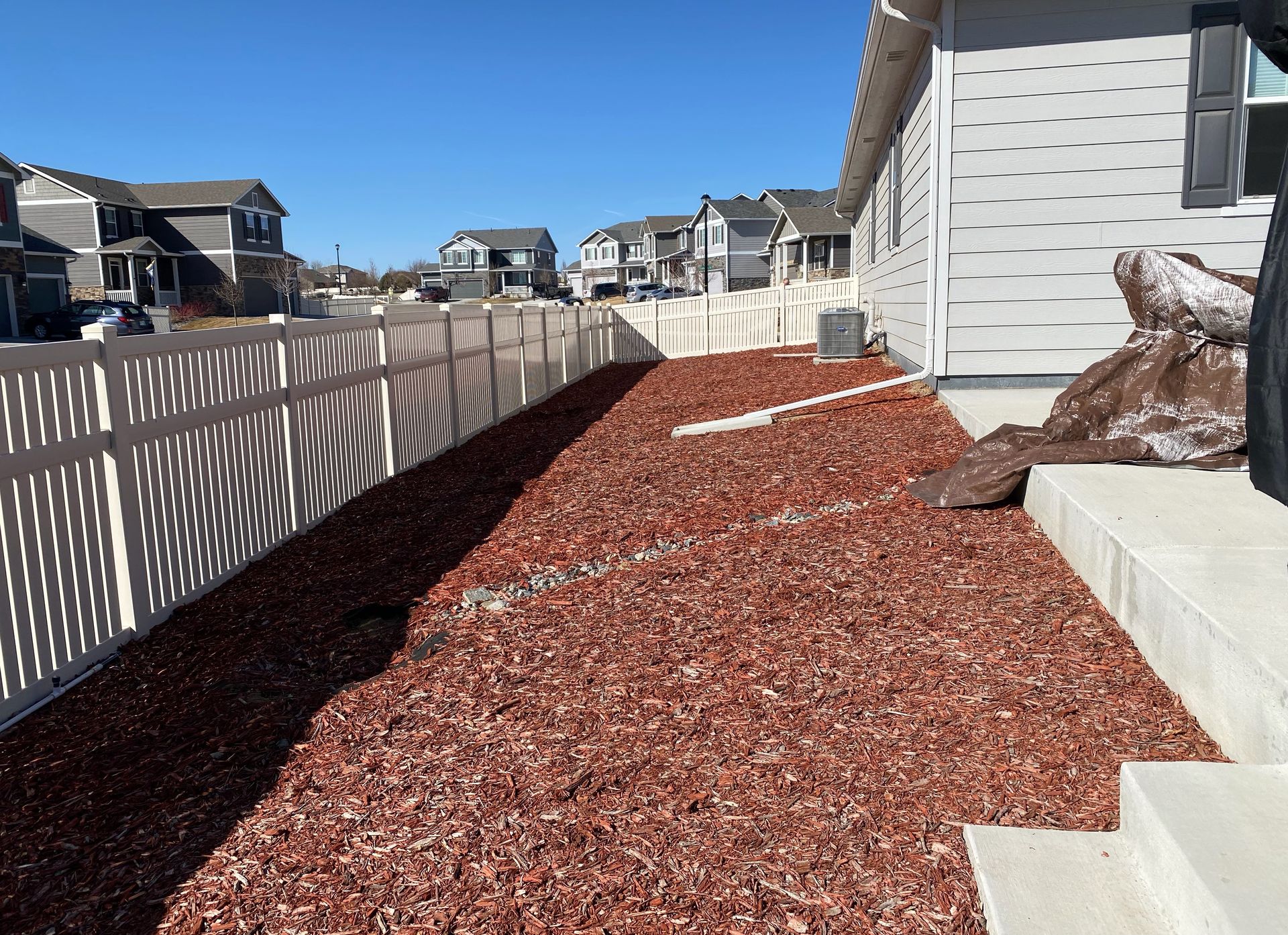 The previous home owner had let weeds go rampant in the backyard for five years, and had only thrown down weed fabric and dyed mulch when they put the house on the market. The back yard had no irrigation and was completely covered in fabric and mulch. Goatheads and bindweed were the prominent weeds, popping up everywhere they had an opportunity.