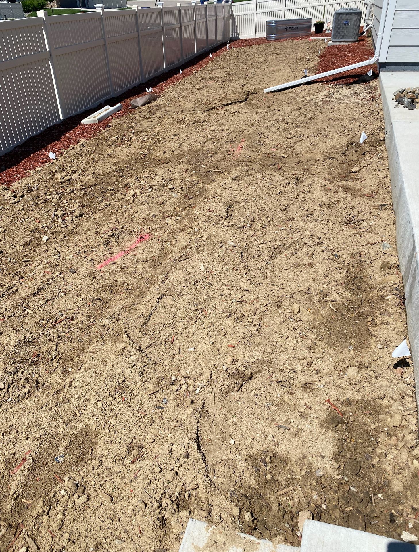 A client was looking to add new sod and irrigation to the backyard of the home that they had just moved in to. Their house was built five years prior, and their specific development started on farmland. The development project had stalled and the undeveloped land sat fallow and bare for 15 years before building resumed.